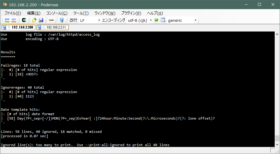 fail2ban 側のステータスも出力して、nftables と同じ内容であることが確認できました。