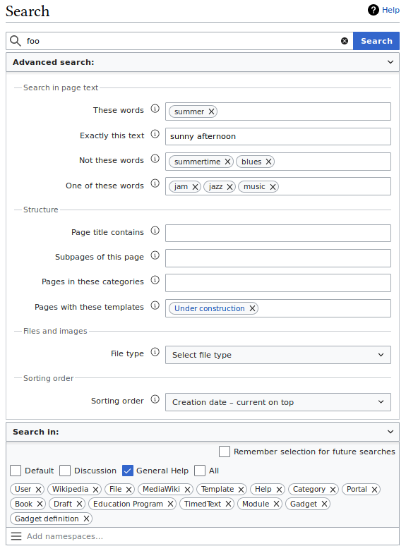 Wikipedia(日本語版)のバージョン情報を確認したところ、MediaWiki 1.43 でも Elasticsearch 7.10.2 を使用していました。検索に関する拡張機能は CirrusSearch と Elastica、AdvancedSearch を導入しているようです。
