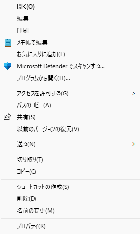 Windows 11 になってからファイルを右クリックしたときのコンテキストメニューが刷新され、シンプルなレイアウトに統合されました。