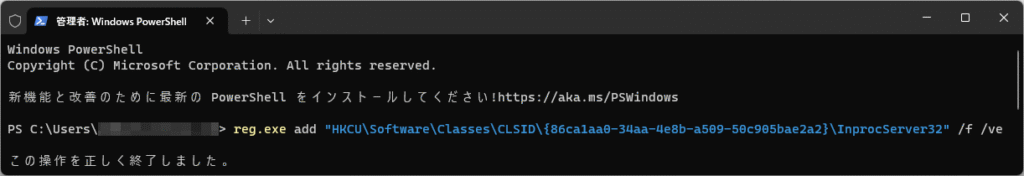 上記のレジストリ エディターで設定した内容を、コマンドラインから一発で変更する方法もあります。