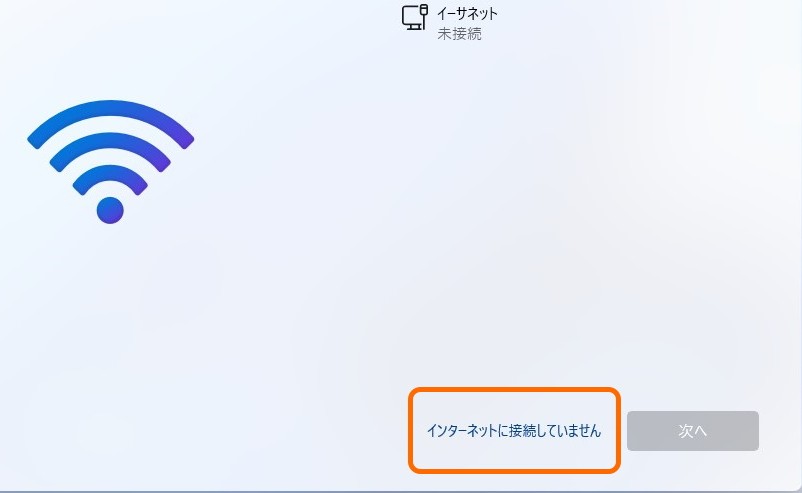 - 再びセットアップが表示されるので、「ネットワークに接続しましょう」という画面で「インターネットに接続していません」を選択します。